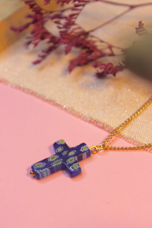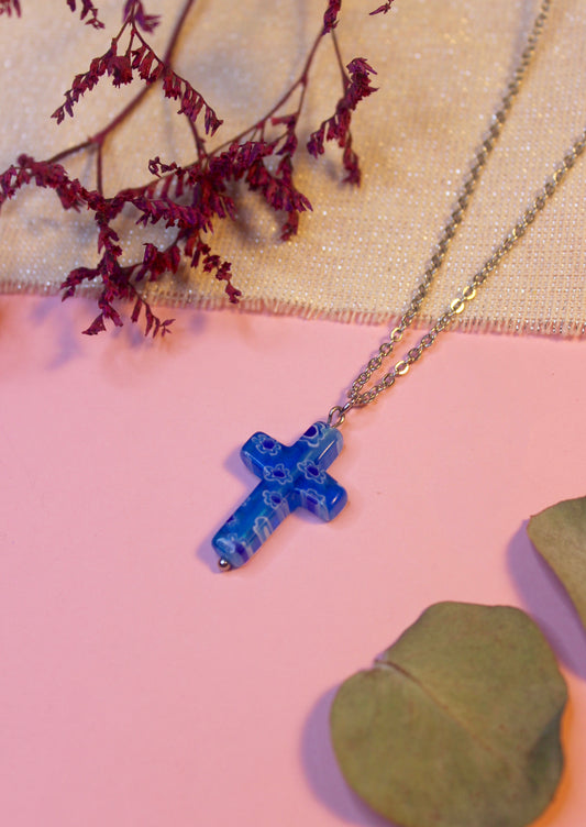 Colgante Cruz cristal azul