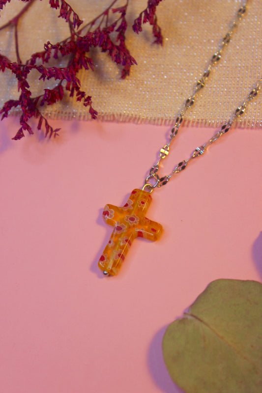 Colgante cruz cristal amarilla